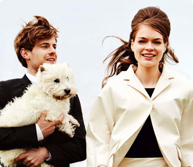 Summer's Coolest Couple- the title of the 1960's inspired photo shoot I found myself flicking through Glamour UK's June in Athlone last weekend. I had never heard or seen before this gorgeous couple, but Estelle Yves and Harry Treadaway made me drool over this gorgeous photography, and the clothes too of course, labels including Moschino, Marc Jacobs, Louis Vuitton and Miu Miu. Estelle's bouffant also reminded me how last year I wore a beehive all summer long, but I don't think I'll be brave enough to pull off one this high this year!